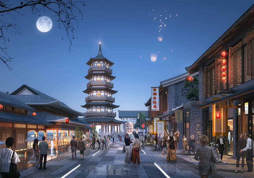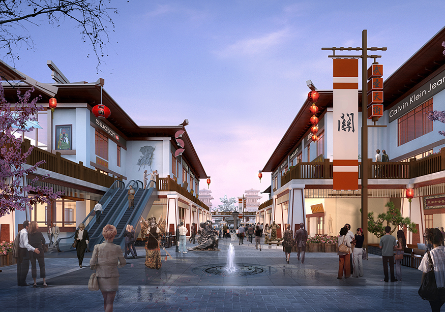 ? ? 文化商業(yè)街的設(shè)計頗具匠心,從入口處開始,至文化商業(yè)街出口處結(jié)束,整個用關(guān)羽輝煌起伏的一生為時間線進(jìn)行貫穿。如果說整條街區(qū)是關(guān)羽在世生而仁、仁而勇、勇而義、義而忠的再現(xiàn),那么從街區(qū)的出口處就是關(guān)羽侯而王、王而帝、帝而圣、圣而天文化升華的開始。讓體驗者通過關(guān)公精神,體驗現(xiàn)代旅游綜合商業(yè)區(qū),建設(shè)一個集餐飲休閑、旅游度假為一體的傳統(tǒng)古典園林式的商業(yè)綜合體。