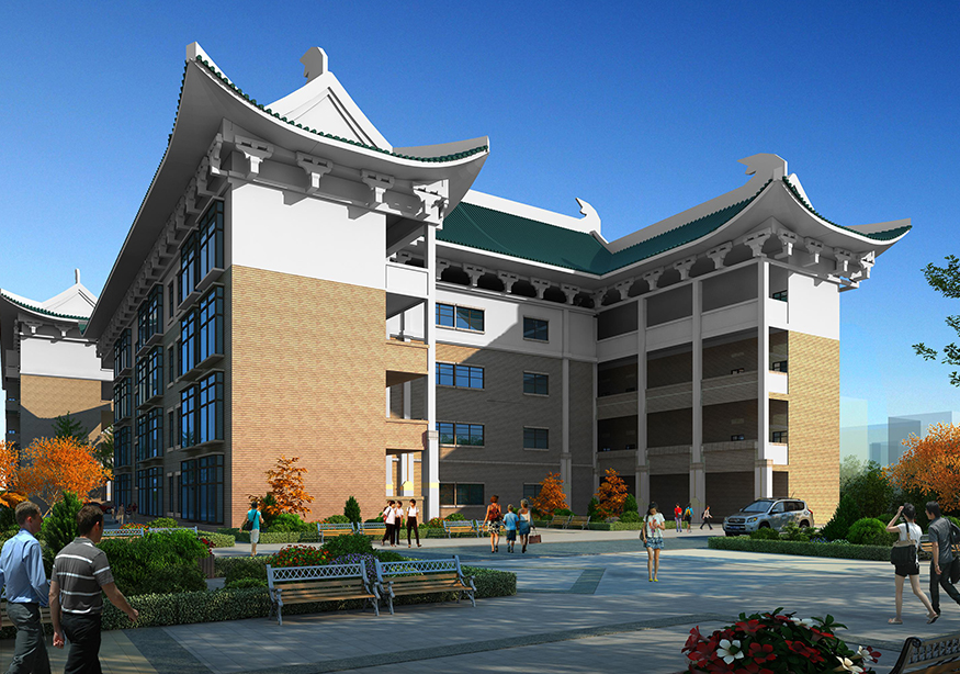 用地面積69647.32㎡,總建筑面積50810.41㎡,建筑密度18.76%,容積率0.67 ,由教學(xué)樓、專業(yè)教學(xué)樓、食堂、學(xué)生公寓、教師公寓及報(bào)告廳組成。