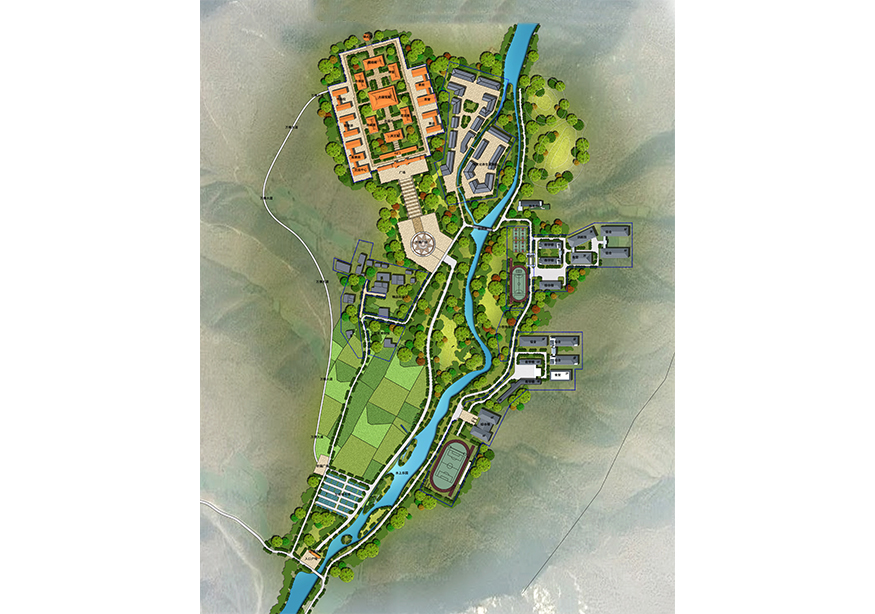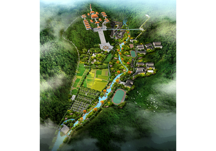駐馬店忠國寺項(xiàng)目選址位于河南省駐馬店市,距離市區(qū)約50公里,占地面積共約30000畝,總建筑面積約8萬方。用地現(xiàn)狀自然分光、地形地貌獨(dú)特,且風(fēng)水極佳,背有高山、前有流水、位于山谷之中,藏風(fēng)聚氣。整個項(xiàng)目圍繞忠國寺以“禪行”文化展開設(shè)計(jì),規(guī)劃有六大板塊,包含忠國寺寺廟區(qū)、衡水中學(xué)駐馬店分校、文武學(xué)校、養(yǎng)生素齋館、精品民宿區(qū)、北影影視基地。同時項(xiàng)目含有萬佛大道、景觀索道、玻璃通天橋、聯(lián)姻橋、水上樂園等交通、旅游方面配套設(shè)施。