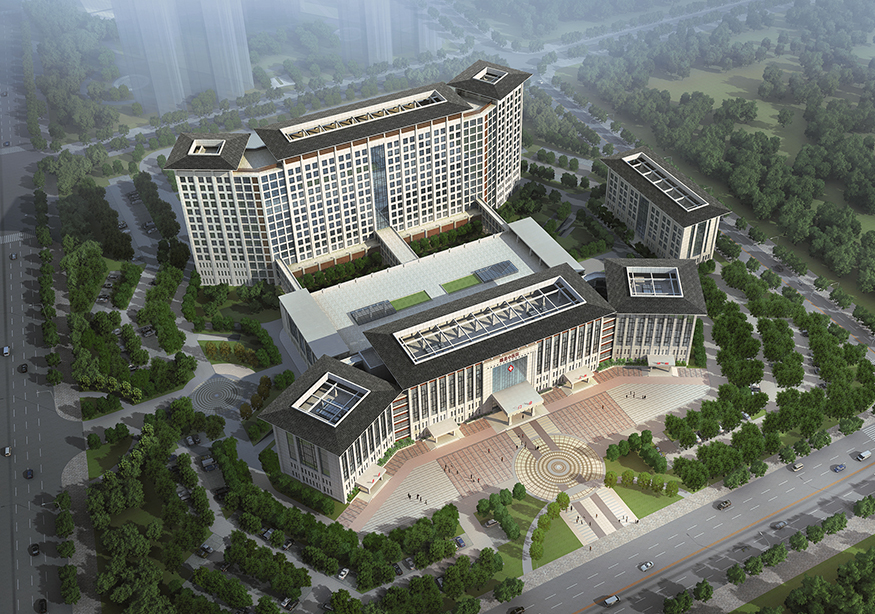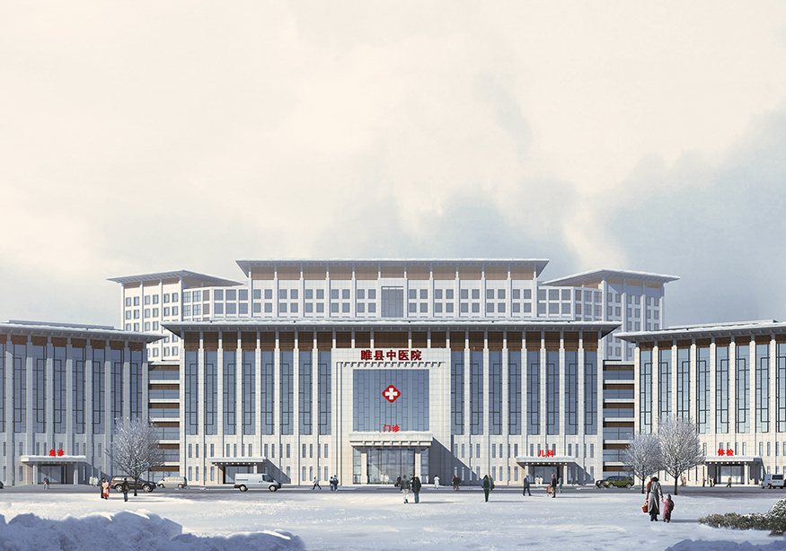 建筑群總體平面形態(tài)呈“鰲”形,形象的說明睢縣中醫(yī)院在當(dāng)?shù)蒯t(yī)療領(lǐng)域乃至全國中醫(yī)院系統(tǒng)獨(dú)占鰲頭,同時(shí)也象征來此就醫(yī)的患者能夠健康長壽。